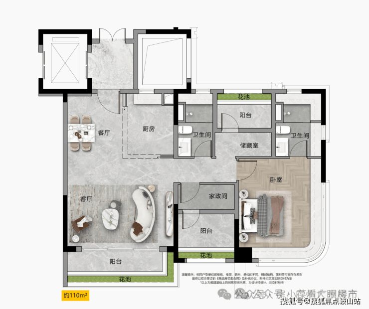 建面约108-110m²创意空间