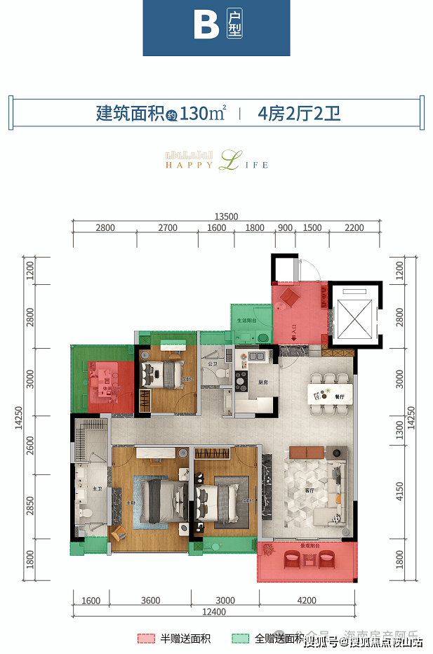 客厅开间4.2米,户型方正,全明通透,动静分区合理;