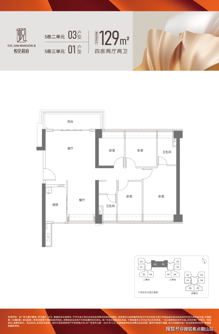 129㎡的4房2厅2卫,折后总价649-686万/套,单价5.02-5.31万/㎡。