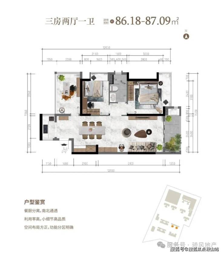 三房两厅一卫 建面约86.18-87.09㎡