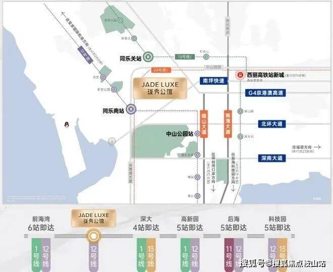 15号线同乐关站(在建中,预计2028年12月开通),串联宝中/前海/深圳湾/西丽,也被称为深圳“一环线”,本项目为环线上的重要一环;