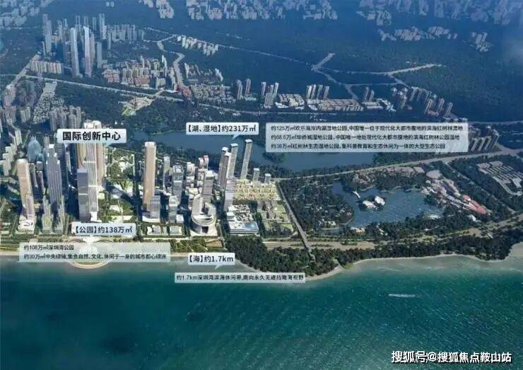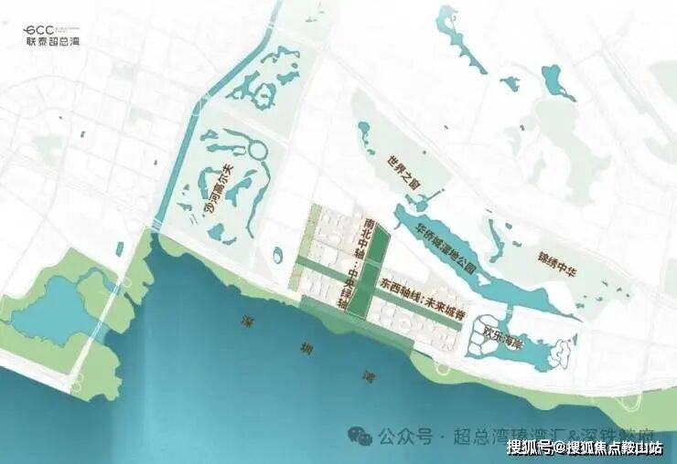 深超总拥有海、湖、湿地、公园、高尔夫五重稀缺生态资源,通过中央绿轴打造"超级校园"生态模式。滨海大道下沉,将释放约10万平方米地面空间,无缝连接深圳湾公园,形成连续的滨海公共空间。中央绿轴地下空间面积约30万平方米,投资95亿元,将建成连接地下枢纽与地面生态的超级系统。这种设计使深超总成为高密度城市环境下生态融合的典范,实现"在城市中漫步自然,在自然中享受城市"。