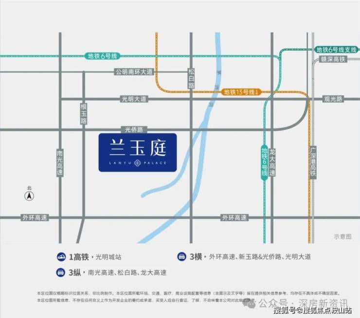 项目出门就是光明主干道光侨路,快速接驳深圳外环高速,南光高速,还有松白路半小时就可以直达南山西丽,当前最近的6号地铁线“长圳站”距离约5公里,后期周边规划有18/29号地铁线“根玉路站”在附近。