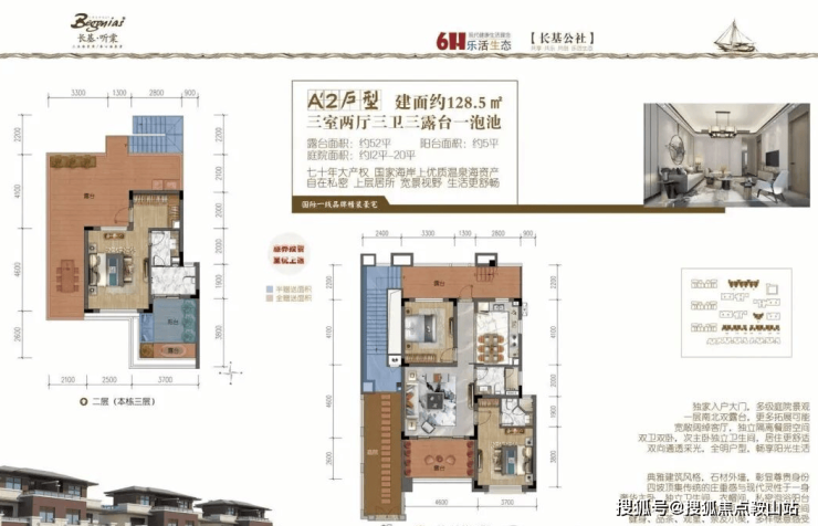 上叠别墅127-128㎡(赠送面积约:70-78㎡)、下叠别墅145-153㎡(赠送面积约:63-90㎡)