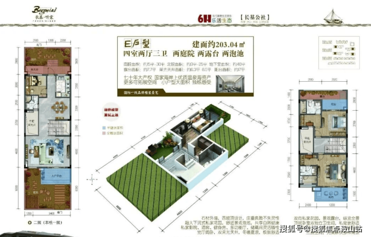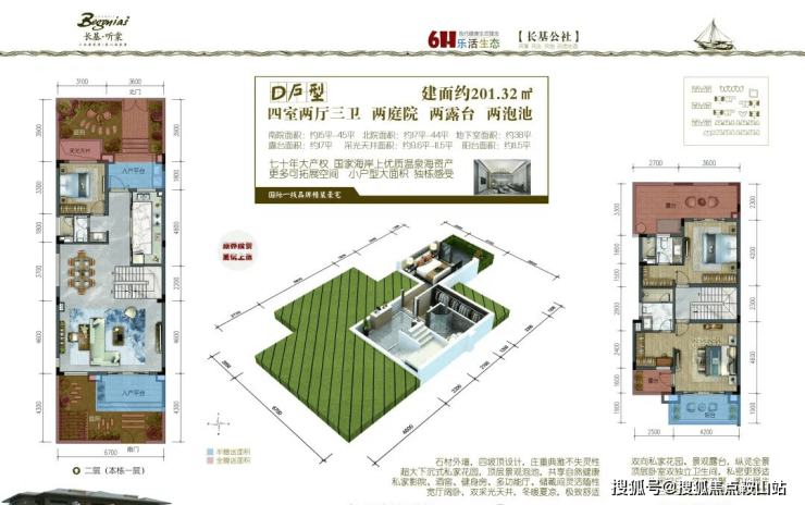 四联排别墅:201-203㎡(赠送面积约:108-128㎡)