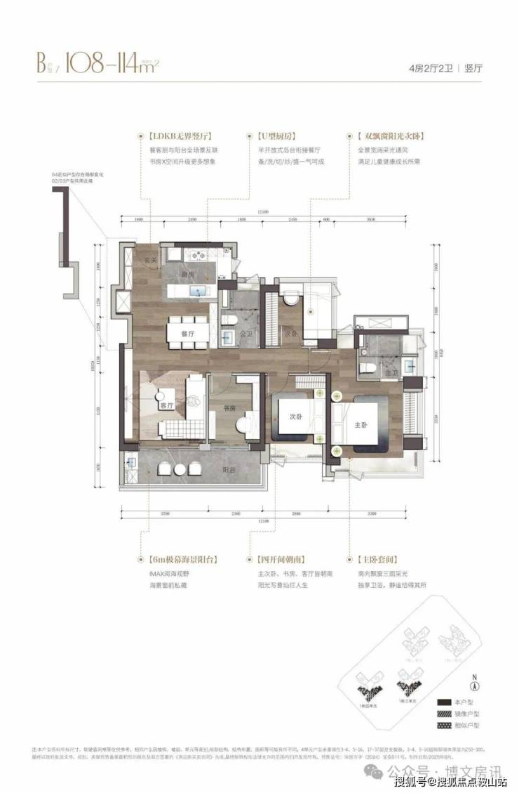 建面约108-143㎡海幕纯四房,臻藏级南向湾海视野,LDKB人性化动线设计,格局方正、高实用率,打造独立玄关、双飘窗主卧、步入式衣帽间等个性化空间。