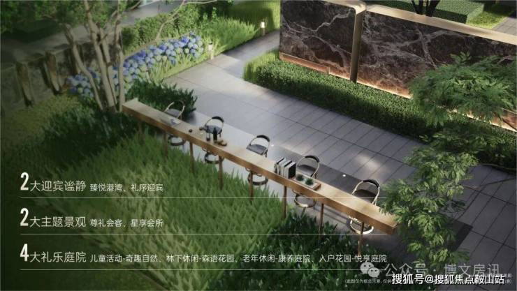 |“臻享森境”景观会客厅将自然之美与精致工艺融为一体,打造景观会客厅、艺术水景、户外吧台、阳光草坪等静谧空间。