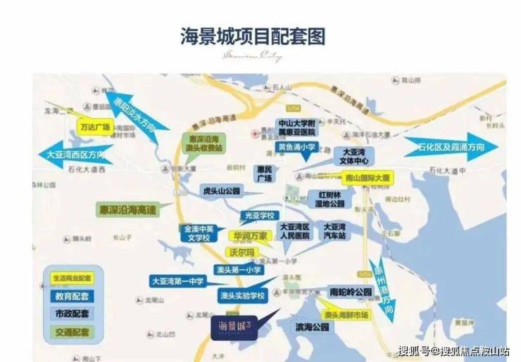 海景城位于惠州大亚湾滨海公园旁的惠州大亚湾海景城(备案名宏海蓝湾)项目,包括住宅、公寓、写字楼和商铺。一期和二期已售罄,现在正在售卖三期的9-10#,户型面积从115-148-164㎡,坐拥一线海景。该项目楼下即是大亚湾滨海公园,备案价为17627-20501元。目前全场最低价单价为90000-11000元,而且可零首付购房。