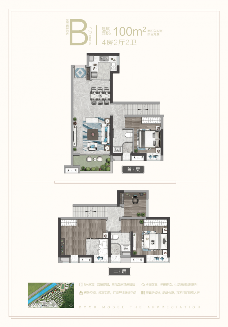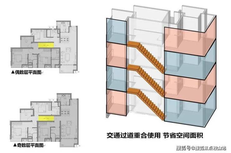 其一,是实用率接近100%,一套100㎡的单位,相当于一般平层120㎡的实用空间。