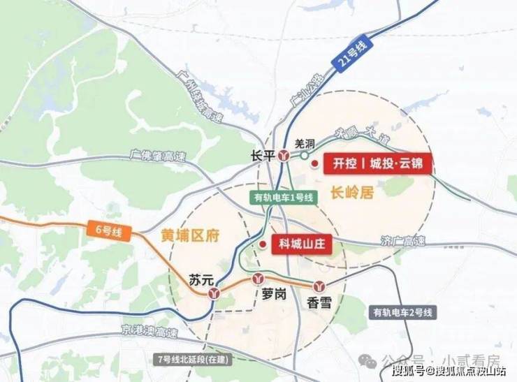 距地铁21号线长平站约800米,有轨电车1号线羌洞站就在小区门口,接驳地铁3站到科学城,4站到天河。