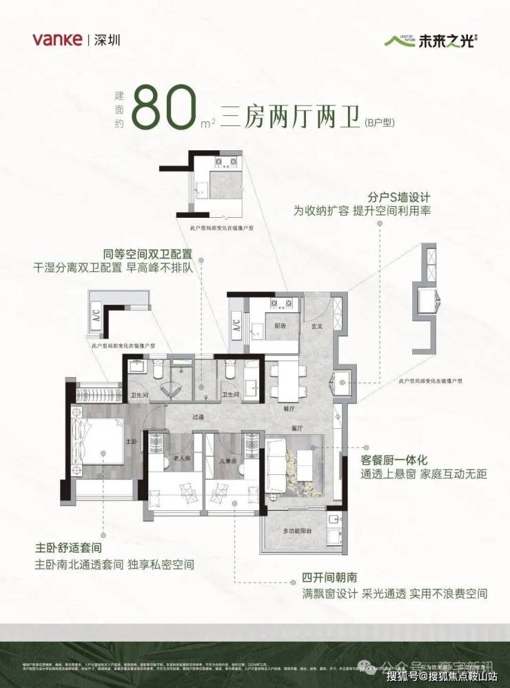 💎建面约80㎡B户型3房2卫