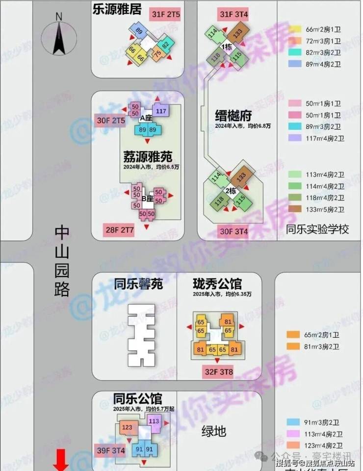 同乐南站北部这边聚集了5大新盘,都是独栋或者2栋楼的小体量楼盘,同质化比较严重,竞争激烈。