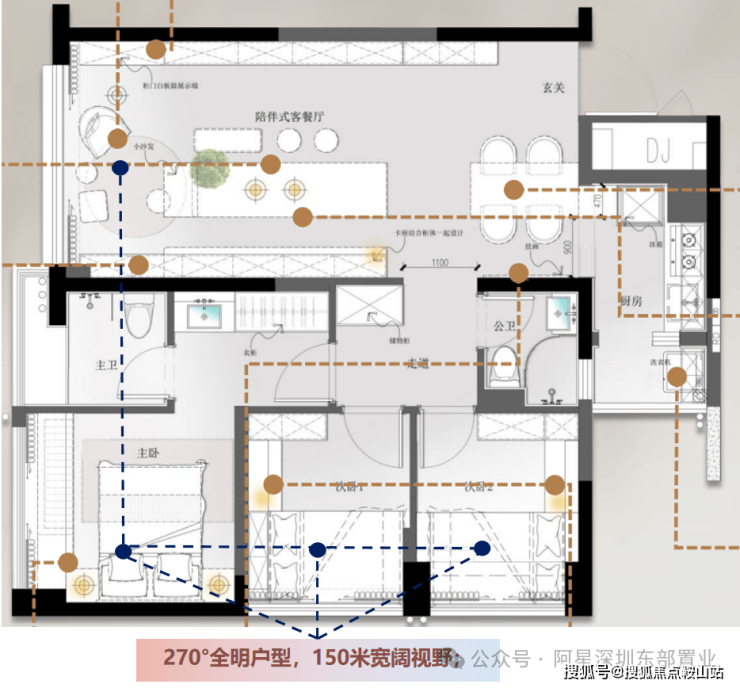 ⭕270°采光·150米宽境视野
