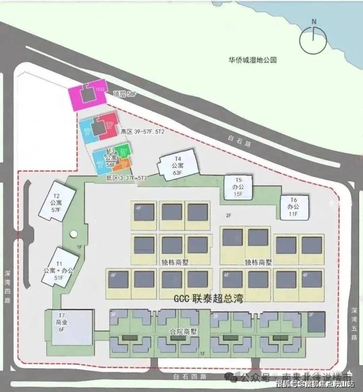【业态组成】T1栋有局部商办;T2、T3、T4栋都是公寓;T5 、T6也是商办小高层