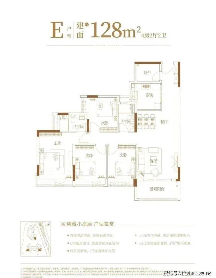 128㎡四房:独立入户花园设计,约 16㎡超宽阳台,主卧套房带飘窗,兼顾改善需求。