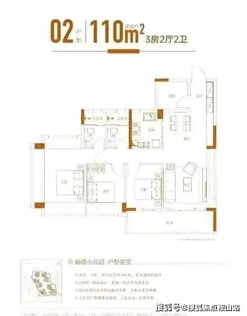 110㎡三房:西南朝向,双阳台配置,客厅与主卧尺度优于二期,适合二孩家庭。
