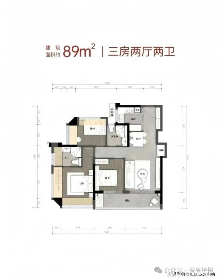 约89㎡三房两卫337-352万