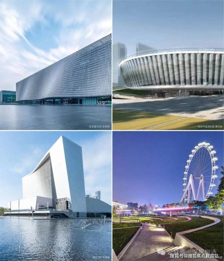 「湾海人文群」深圳书城湾区城、湾区之声、湾区之光、青少年宫、国际会议中心、宝安公共文化艺术中心、宝安图书馆等