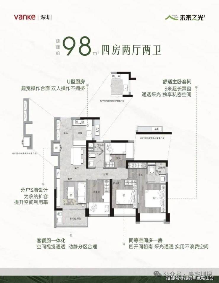 98㎡四房两卫【654-730万】超高使用率四房,折扣更大