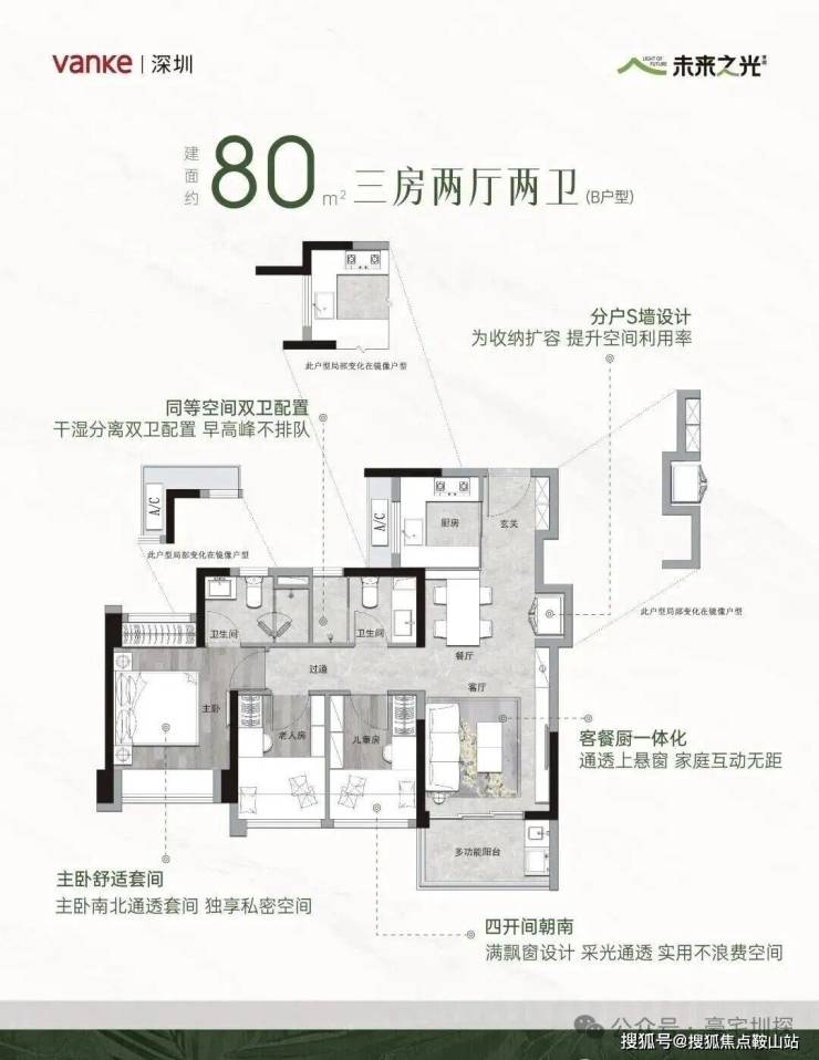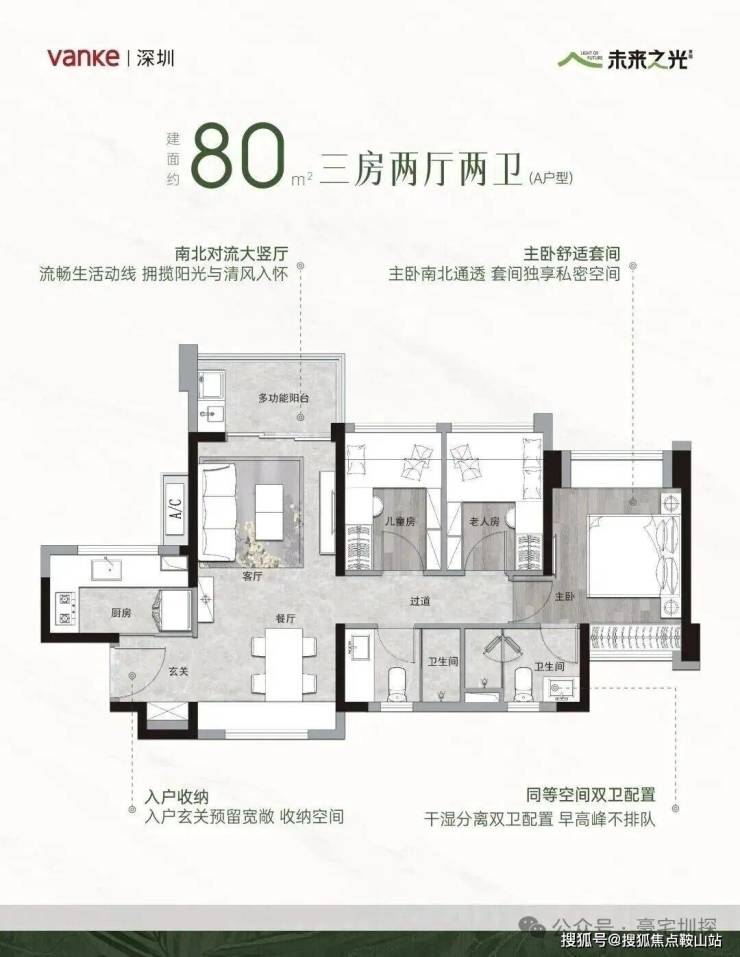 建面约80㎡A户型3房2卫项目官方统一服务热线:🔥400-870-6038🔥