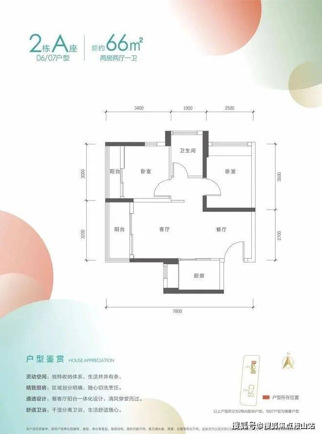 2栋A座06.07户型,设计的是竖厅格局,客厅3.2米开间,2个卧室分别做到了主卧9.9㎡/次卧9.1㎡(包含墙体飘窗),得房率约74.05%(不含赠送),朝西或朝东向。
