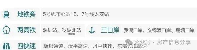 项目距离地铁5号线布心站约200m、距离地铁5、7号线太安站约500米。周边近享2高铁、3口岸、4快速,通达全城