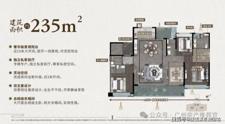 保利华南3.0豪宅时代,235产品升级,最具尺度感的餐厨客一体空间,超强总统套房级主卧,得房率超高产品