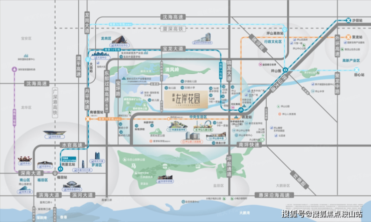 蔚蓝左岸花园,位于坪山区碧玲街道沙湖社区坪山大道与碧沙北路交汇处东南侧,项目地处的沙湖板块作为坪山西门户,根据坪山区政府的规划将定位为碧岭深港生命健康产业合作区, 将建设成为深港科技创新协同引领“创新核”、彰显地区生态人文脉络“生态谷”、面向未来宜居宜业魅力“智慧城”。