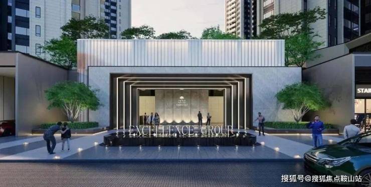 轻奢酒店式落客大门:宽约23米气派门楼,艺术水景与铁冬青乔木