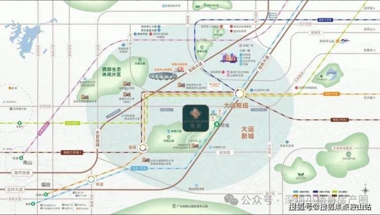 乐宸花园,位于深圳市龙岗区园山街道龙岗大道与坳背路交汇处北侧,地处龙岗大运新城核心地段 。大运新城是深圳市六大"城市新客厅"之一,承担着国际商务中心、国际教育中心、创新枢纽中心、创新研发中心和文体文化中心五大核心功能 。作为深圳东部CBD的核心区域,大运新城享有约1.4万亿东进战略的重资投入,是深圳城市发展"第三极"的重要组成部分。