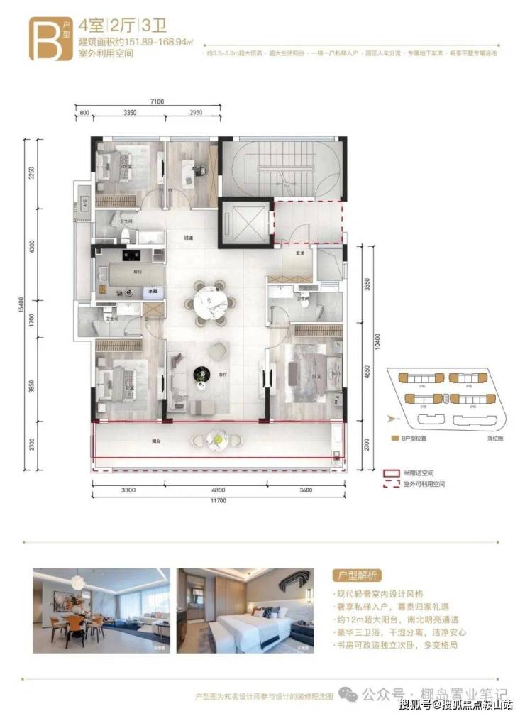 平墅:约115—168㎡ 3.9米层高现房平墅,南北双露台