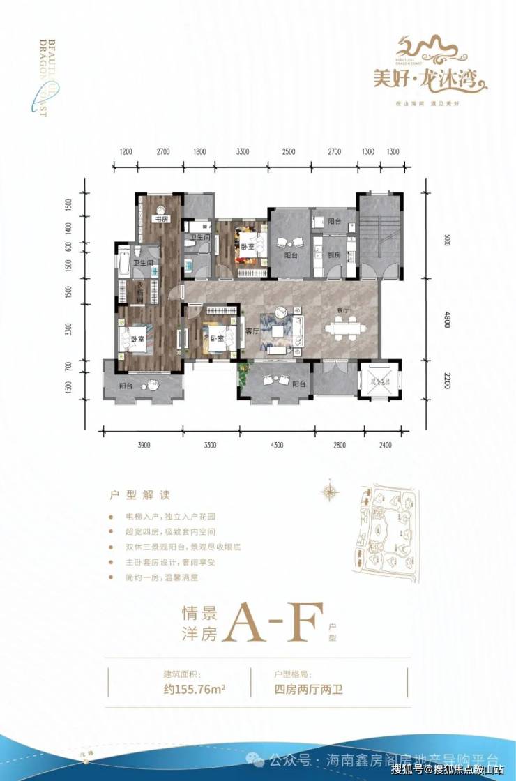 ④ 三房户型三面采光,空间方正合理,双独立明卫,270°环型瞰海阳台