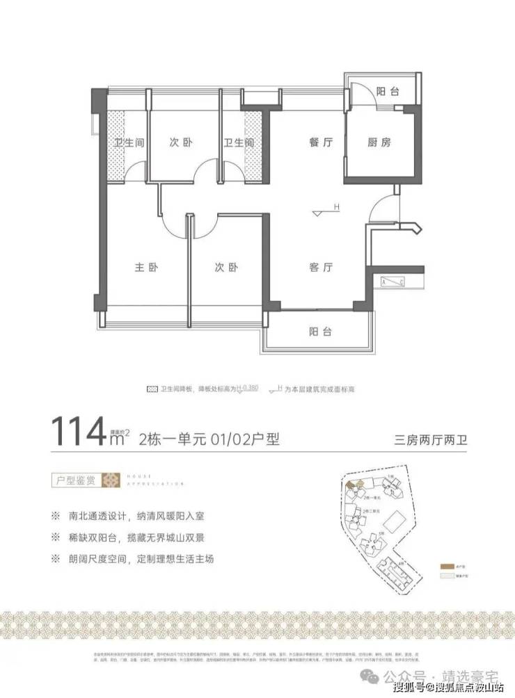 →归心生活:建面约110-133㎡城山双景,南北通透、稀缺双阳台,全系品牌精装,非凡品质臻享