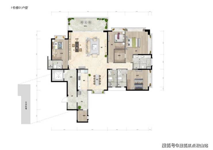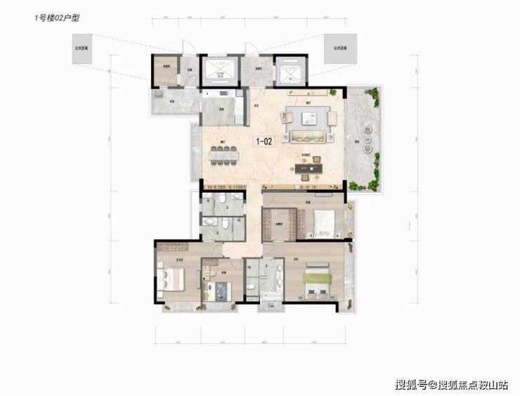 约143㎡四房两厅三卫:豪华双套房,阔绰四房