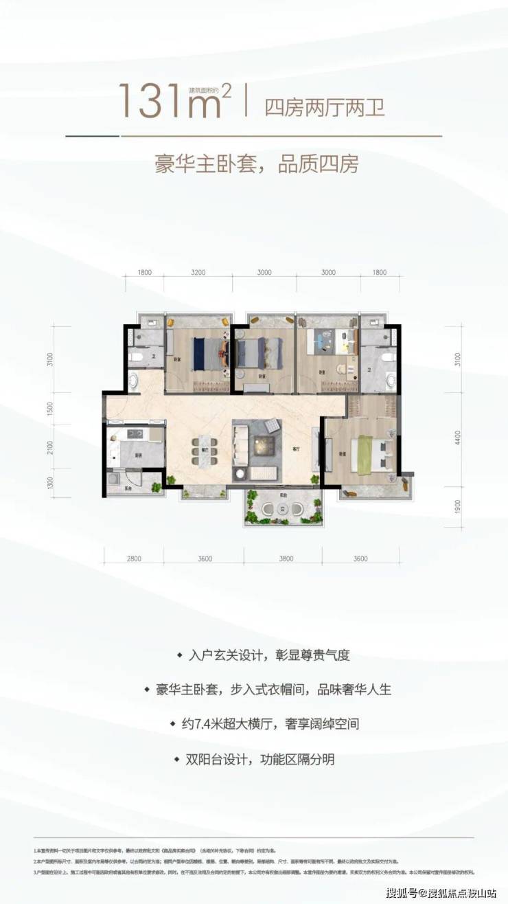 约131㎡四房两厅两卫:豪华主卧套间,高端品质四房