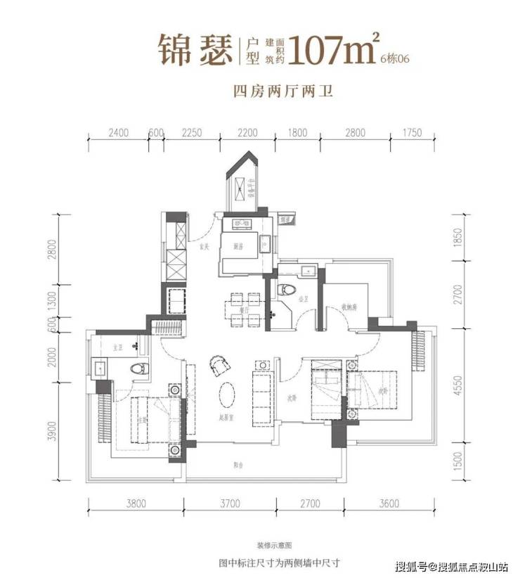 双龙抱珠格局,客厅3.7米开间,S墙预留冰箱位,四开间朝南,主卧+2个次卧270°无柱转角飘窗,分别做到了主卧17.94㎡/次卧16.38㎡/次卧7.56㎡/次卧6.89㎡(包含墙体飘窗),U型厨房烟道外置,得房率约104.06%(包含赠送),客厅连接次卧出超大阳台约11.76平,东北朝向。