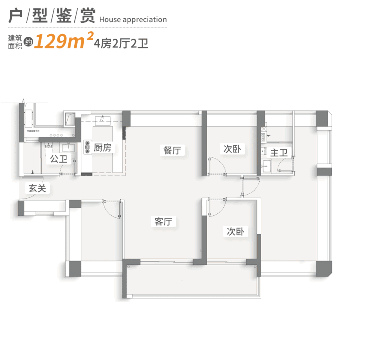 建面约101㎡ 三房两厅两卫 灵动岛境