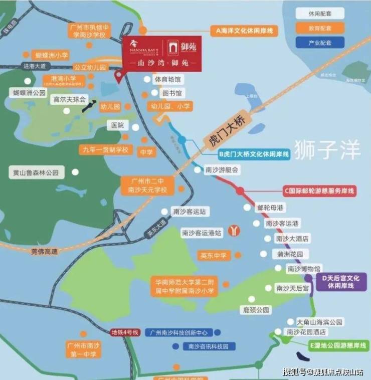 从地段上来看,南沙湾,位于虎门大桥以南、黄山鲁森林公园以东、凫洲水道北侧、狮子洋西侧,处于珠江主入海口位置,是连接珠江口两岸城市群和粤港澳地区的节点。