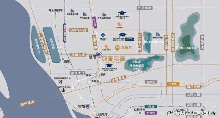 项目紧邻宝安大道、凤塘大道,自驾出行便捷。穗深城际二期预计 2026 年开通,届时塘尾站可直达前海。