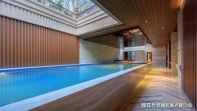 并且地下室层高约4.5米,总面积450㎡,三连厅设计,庭院处可以装得下一个13米长的游泳池,很有巨邸豪宅的气场。