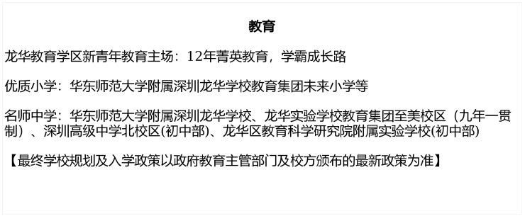 4:能查询对口学区划分(含中小学名称)、周边地铁/公交路线,以及医院、商超等生活配套详情。