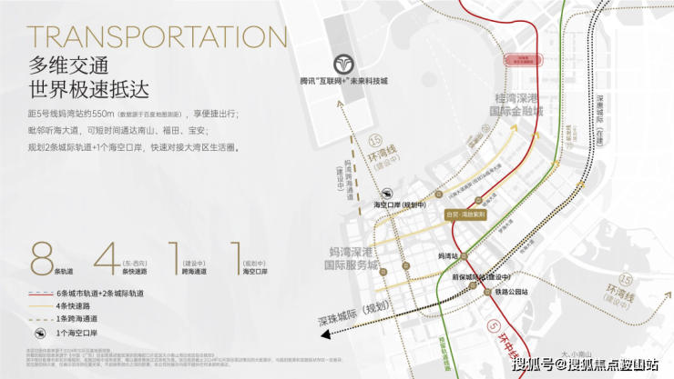 交通:距离5号线妈湾站约600米均,此外,将还有15、21、27、穗莞深城际等多条轨道交通串联前海与其他重点片区。