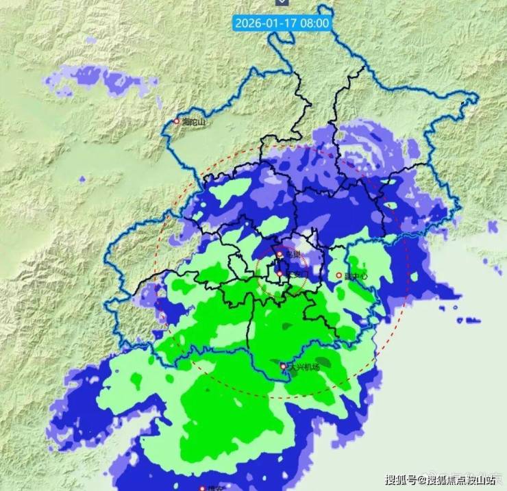 1月17日8时,据@气象北京 消息,今天早晨受偏东风影响,北京西部、南部出现零星小雪或小雪。
