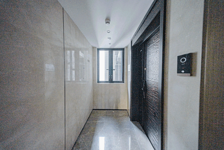 入户配备智能门锁,指纹、密码、刷脸等多种解锁方式,既方便又安全。可视对讲机轻松实现一键呼梯、户户对讲等功能。