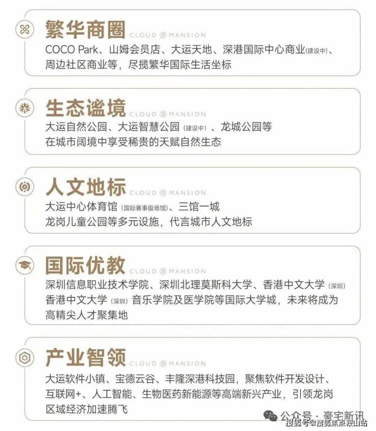 大运新城-深圳东部唯一“城市会客厅”,与前海中心、深圳湾超总、香蜜湖金融街等区域并列深圳六大城市会客厅,汇聚东部大型综合交通枢纽,标杆性文化体育场馆、产业精英商务群、国际大学城等优势,大运新城将成为深圳东部重要发展极点,推动深圳东部增长。
