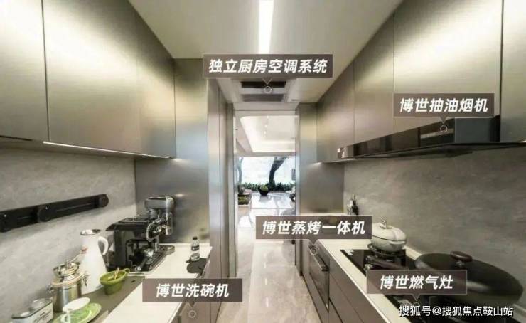 厨房的油烟机、燃气灶、洗碗机、蒸烤一体机都是博世,还配了摩恩大单盆与抽拉龙头,全屋用水前过滤器与净水器也在标配清单中。(实际交付可能为同档次品牌)