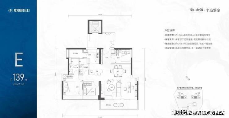 【139㎡的4房2厅2卫】1栋03/2栋02高区户型,电梯入户送独立公区,竖厅类双龙抱珠格局,四开间朝南,主卧大套间设计,有1个多功能间可以做书房,6.4米长观景大阳台,L型厨房带1个生活阳台,卫生间干湿分离,得房率:72.07%(不含赠送),西南朝向;