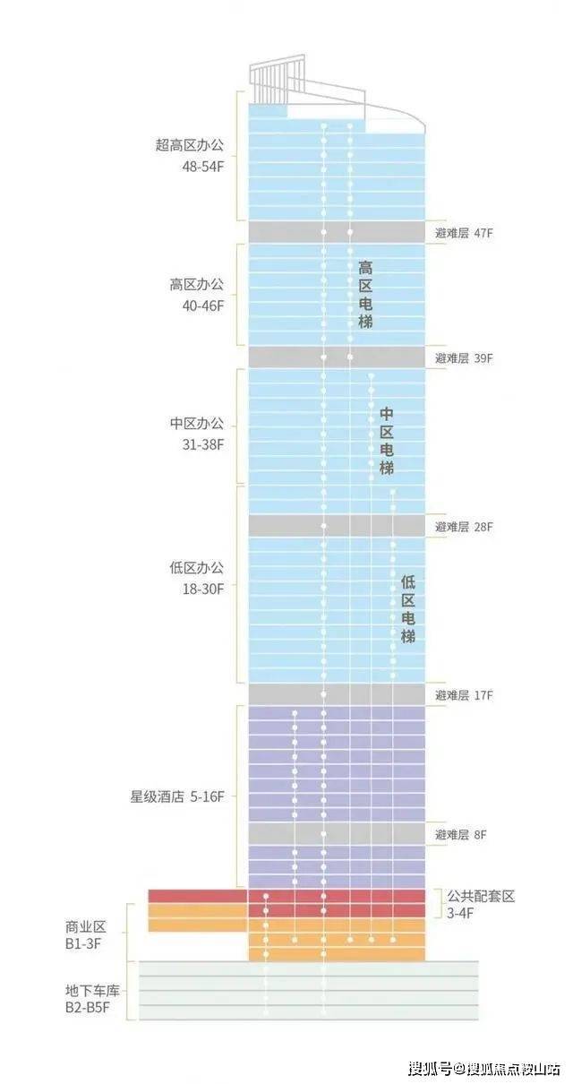 【层高】:标准层高4.2米,超高区(48F以上)4.5米