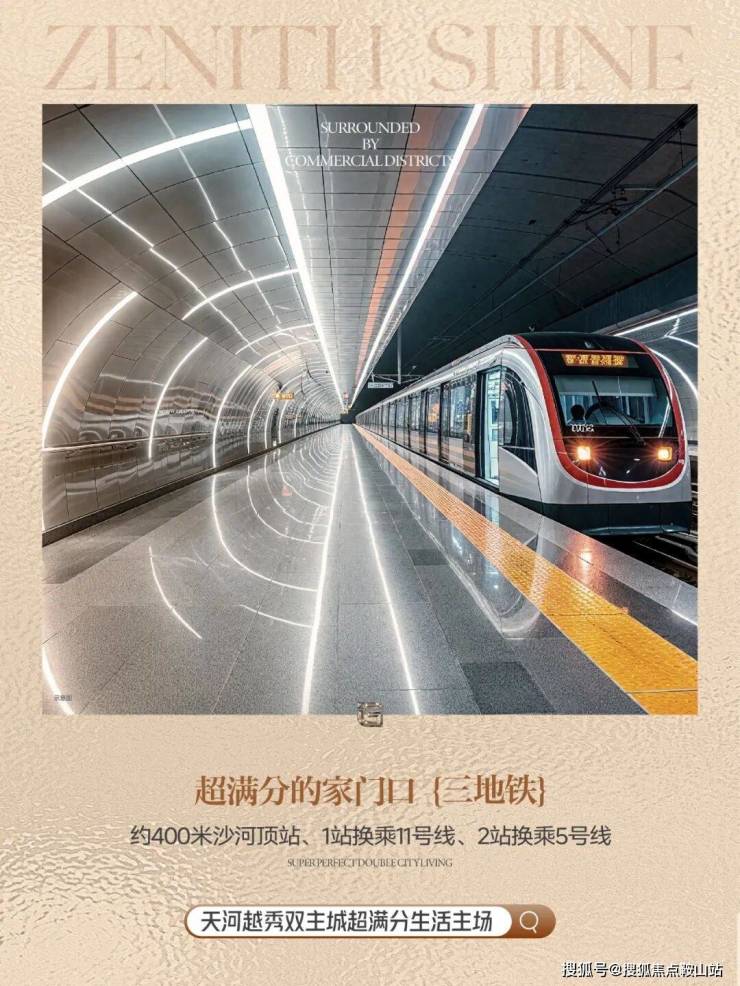 【超满分💯的家门口三地铁】周边交通路网丰富,紧握城市动脉,约400米沙河顶站,1站换乘11号线,2站换乘5号线,离广州东站直线距离仅3公里,立体交通路网,畅达全城。出发与归家,不过一顿饭的时间!