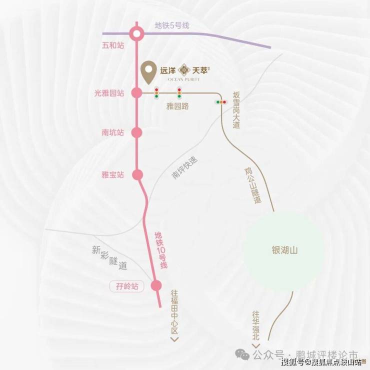 🚗通勤效率,决定人生效率纵向畅达坂雪岗、平湖、福田、罗湖;横向畅达南山、前海、坪山;雅园路直转坂雪岗大道。3个红绿灯到福田10号线纵向串联坂雪岗、福田CBD;5号线横向串联蛇口、前海、西丽、布吉;电梯下楼无缝进站,3站到福田,1站到五和。